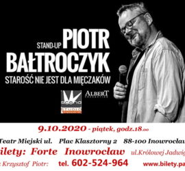 Koncert zewnętrzny: zapraszamy. Piotr Bałtroczyk Stand-up: Starość nie jest dla mięczaków BILETY: W sprzedaży posiadamy: rząd: II, X. Serdecznie zapraszamy. Rezerwacja i sprzedaż biletów: Krzysztof Piotr Pałasz – Fotograf tel. +48 602-524-964 Inowrocław ul. Królowej Jadwigi 2 Bałtroczyk twierdzi, że początek jest ważny, być może nawet ważniejszy […]